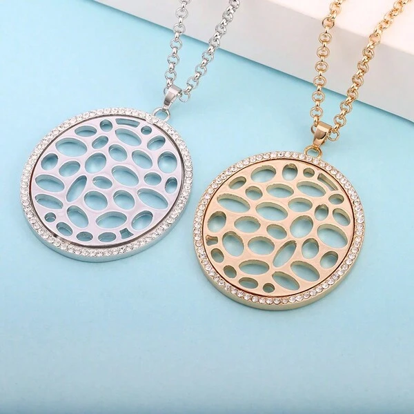 1 Pc Big Hollow Oval Pendant Long Necklace For Elegant Women Stainless Steel Chain Crystal Irregular Geometry Fashion Female Jewellery Gifts