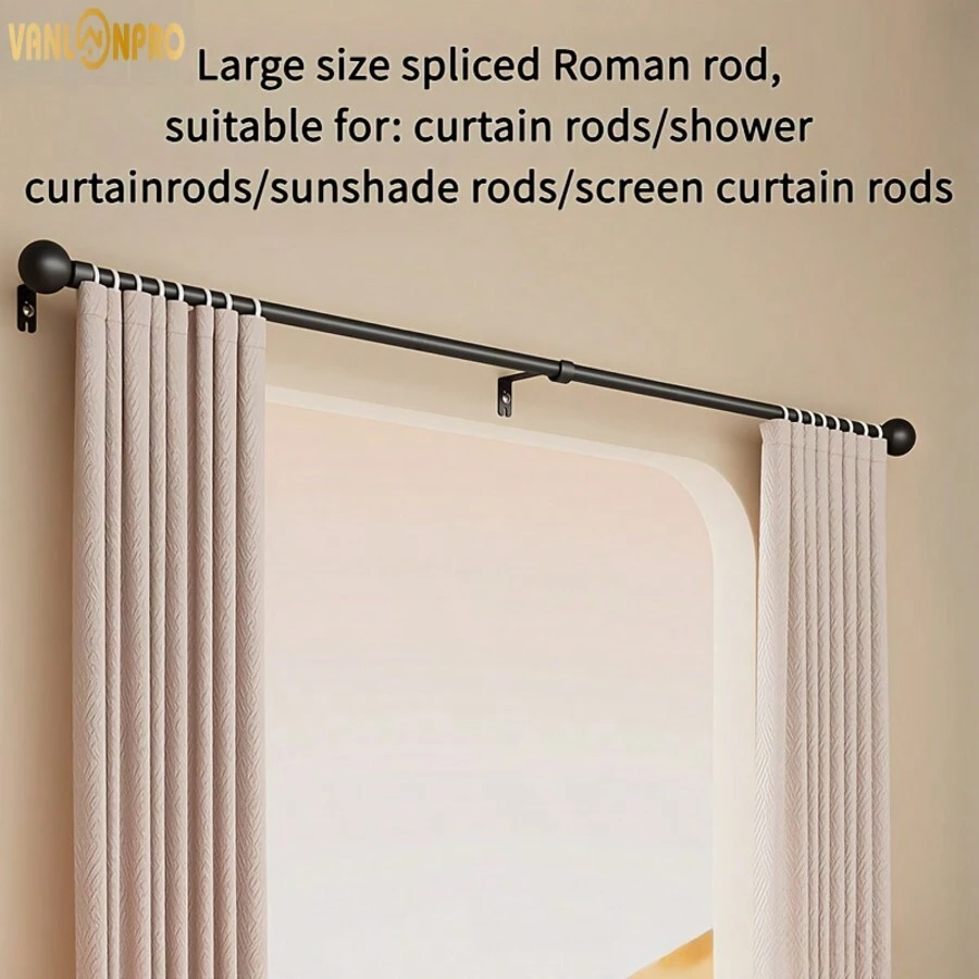 1 Pc Black/White Stainless Steel Spliced Curtain Rod, Window Curtain Rod, Roman Curtain Rod, Suitable For Bathroom, Bedroom, Living Room Home Bathroom Decor Fall Decor Bathroom Accessories Back To School