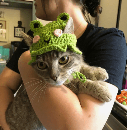 1 Pc Creative Frog Shaped Pet Hat, Dog And Cat Headgear, Hand-Knitted Wool Yarn Hat For Puppy Cat Decoration Accessories Clothing, Green Cute Knitted Frog Shaped Pet Cap For Cats Halloween Costume, Kitten Funny Headgear