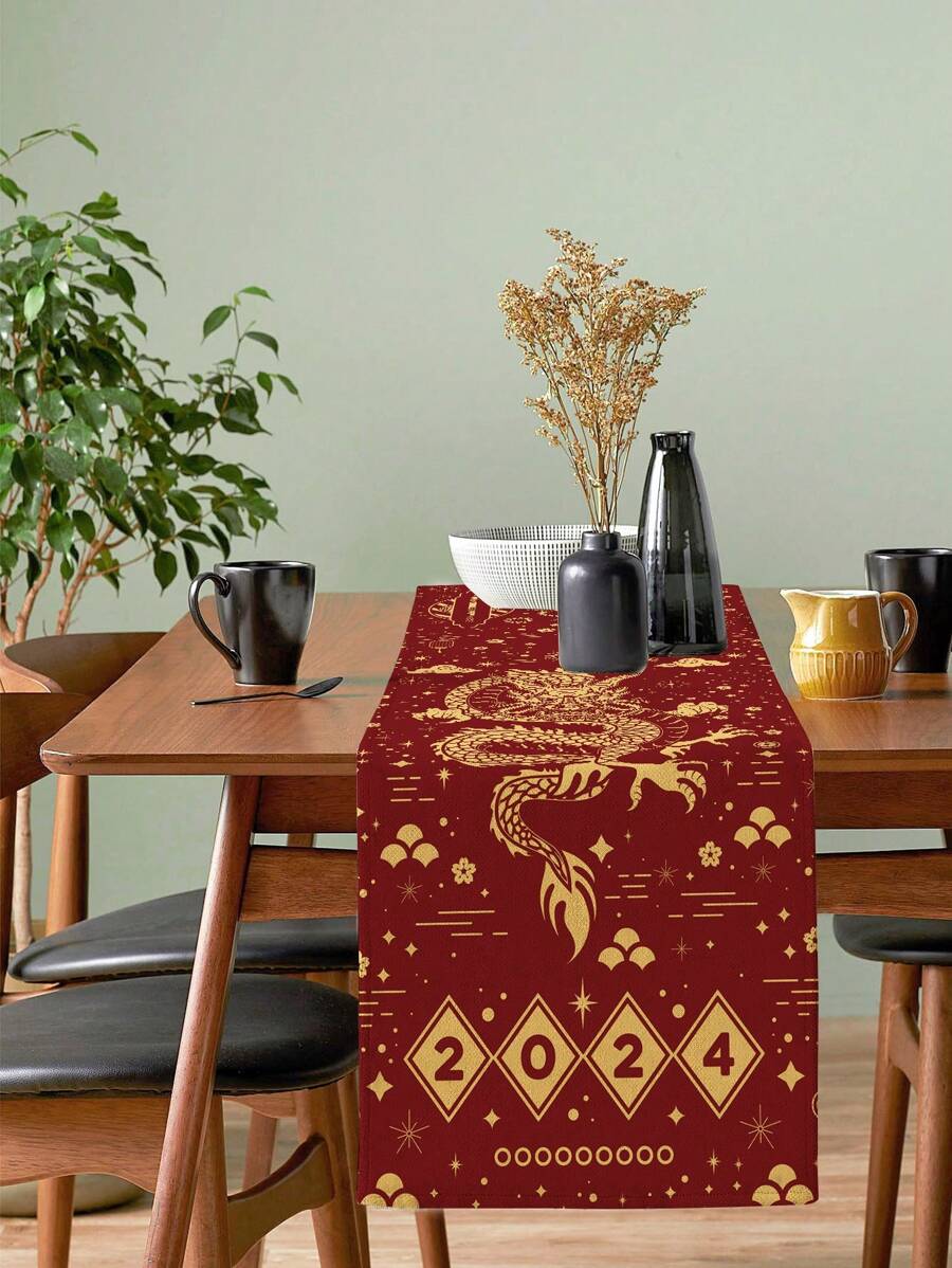 1 Pc Dragon Pattern Table Runner Red Chinese New Year Cloud Farmhouse Kitchen Table Decoration Cloth For Kitchen Island Party Wedding Cafe Restaurant Party 13x72 Inch
