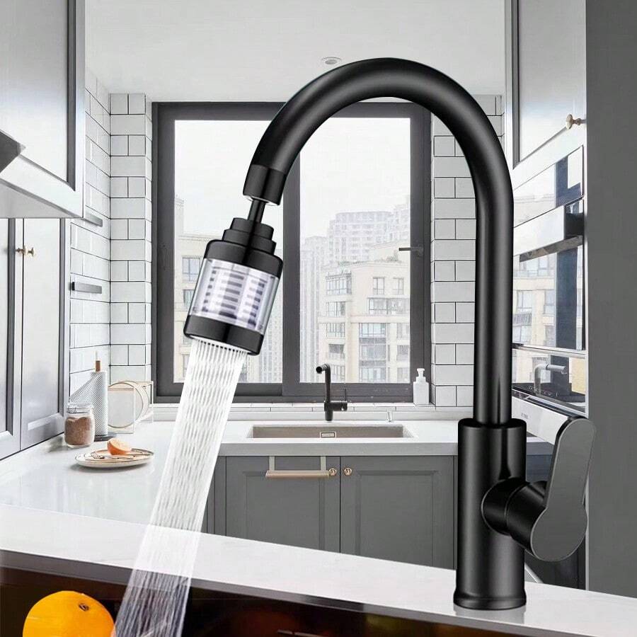 1 Pc Household Kitchen Faucet Filter, 360 Degree Rotatable Filter Extender, Built-In Stainless Steel Filter Cartridge, Washable For Repeated Use, Anti-Splash Water Booster Bubbling Spout, Easy Filter Water Purifier Extension Water Saver For Home Kitchen,Black Color