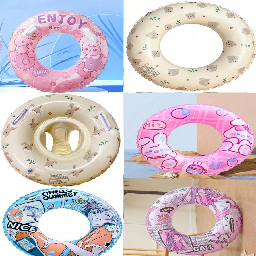 1 Pc Inflatable PVC Swimming Ring - Pink Rabbit, Teddy Bear, Bunny, Cartoon, Pool Float, Suitable For Summer Party, Wedding, Beach Photo Shooting - Great For Family Fun, Inflatable Pool Accessories