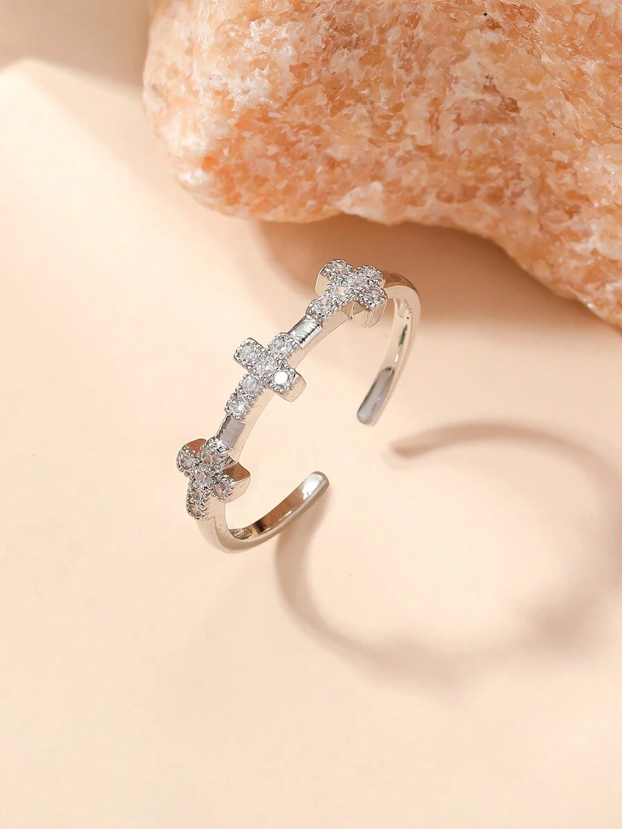 1 Pc Simple And Atmospheric Cross -Shaped Rhinestone Ring Adjustable Women'S Daily Life
