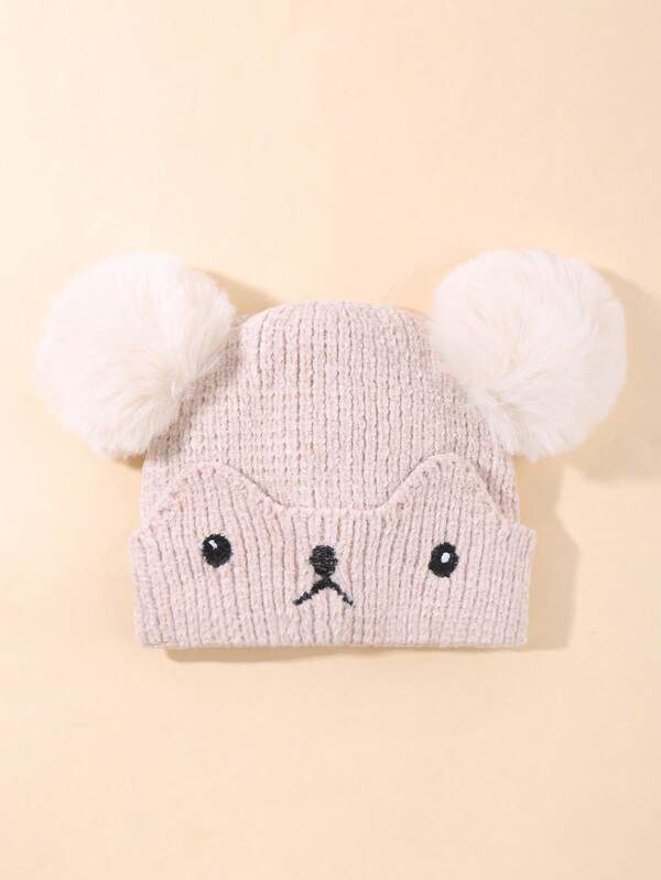 1 Piece Baby Knitted Hat Cute Bear Pom Pom Beanie Toddler Warm Hat For Boys And Girls