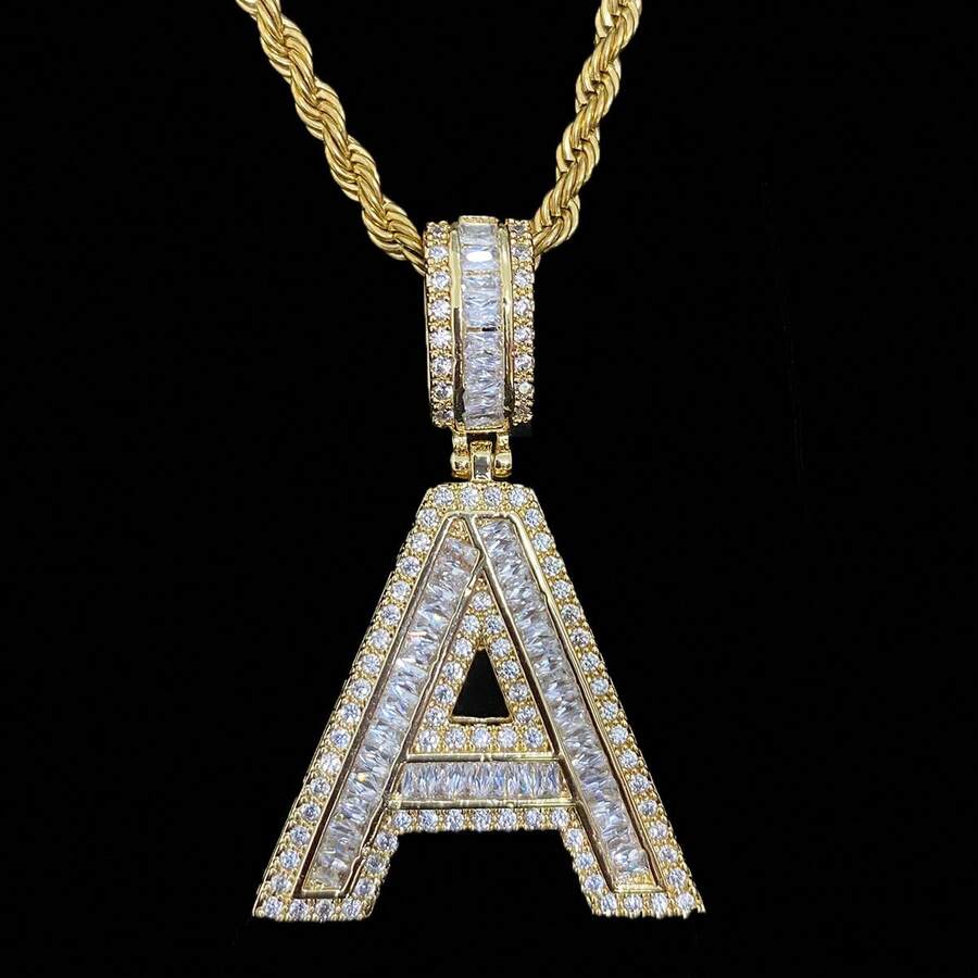 1 Piece Baguette Initial Necklace For Women Single Letter Pendant Cubic Zirconia Hip Hop Fashion Jewelry