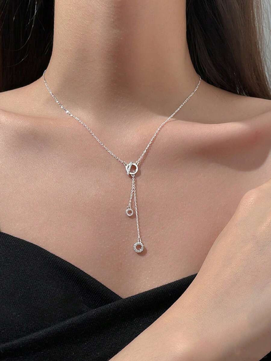 1 Piece Circle Tassel White Gold S925 Silver Necklace