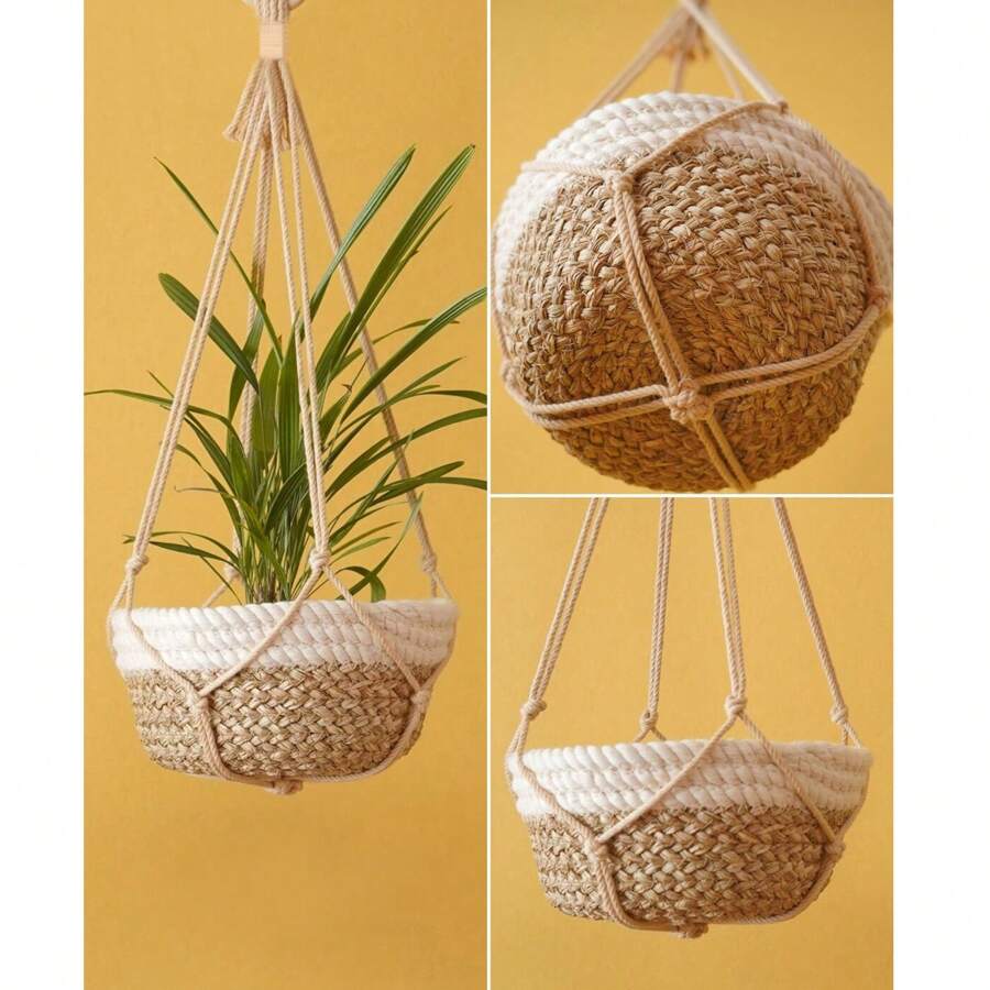 1 Piece Gardening Flower Pot Net Bag Hand-woven Hanging Basket Bohemian Style Indoor Green Plant Decoration