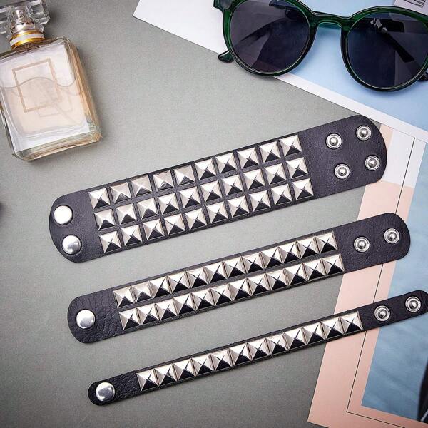 1 Piece Leather Punk Bracelet For Men Women 80s Wristband Goth Punk Rock Bracelet Cuff Bangle Unisex For Party Favors Accessories