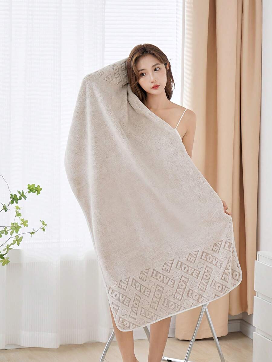 1 Piece Light Gray Bath Towel Letter LOVE Pattern, Polyester Fiber, Rectangular, Suitable For Male And Female Couples, Home Adult Swimming Bath Towel, Quick Drying, Absorbent, Soft And Non-Fading, Suitable For Bathroom, Hotel, Gym, Festival, Party, Etc