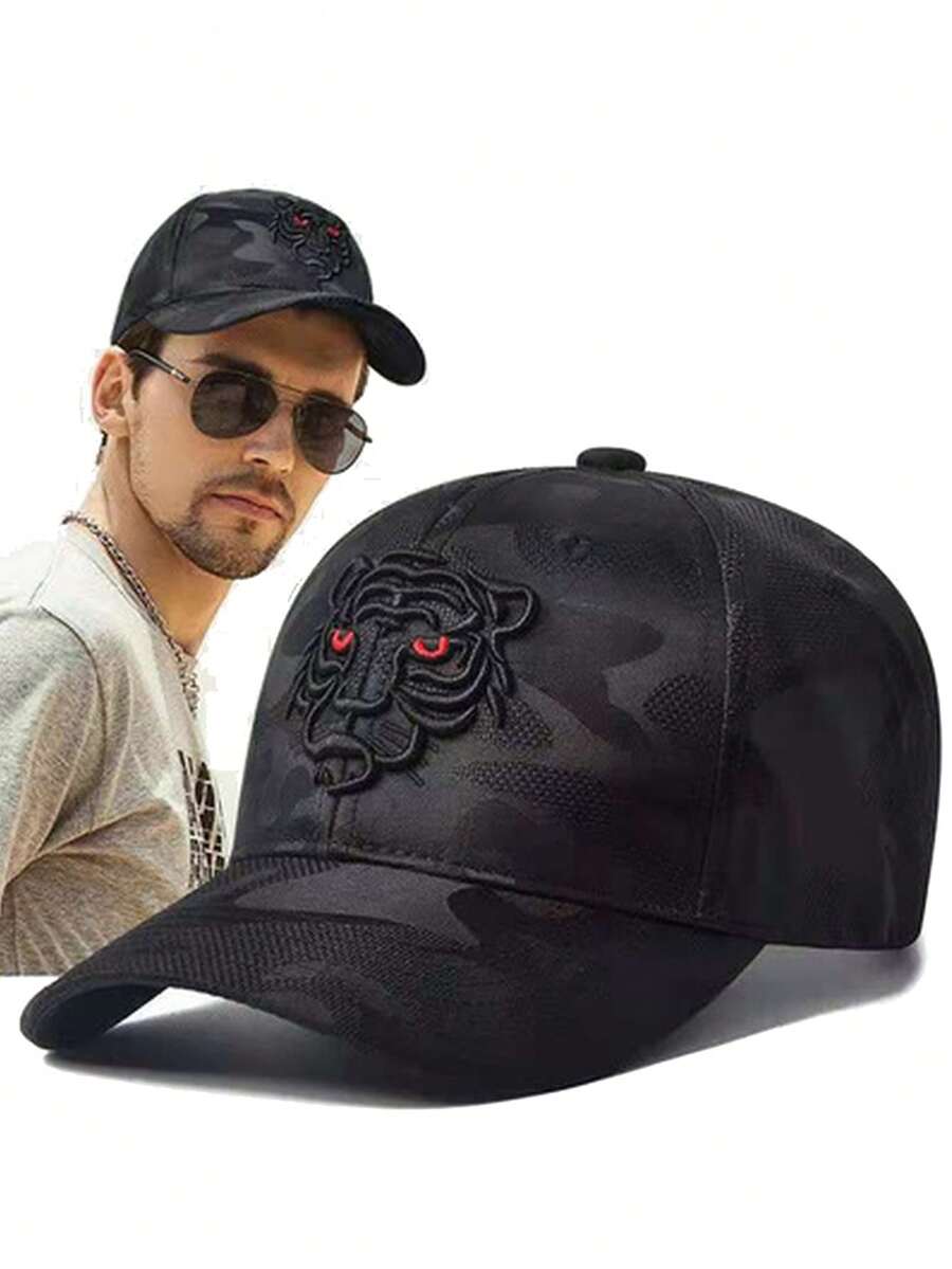 1 Piece Men's Hat Tiger Head Embroidery Cartoon Baseball Cap Solid Color Trucker Hat Outdoor Baseball Cap