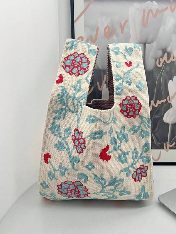 1 Piece Multicolor Block Patchwork Hollow Knitted Crochet Breathable Lightweight Foldable Portable Bag For Mobile Phone, Umbrella, Cosmetics, Lipstick, Perfume, Books - Stain-Resistant, Open Top, Fashionable Women'S Shoulder Tote Bag, Handbag - Suitable For Daily, Vacation, School, Commute, Shopping, Photography, Travel, Camping - Ideal As A Gift, Celebration, Wedding Favor, Suitable For Girls, Ladies, Suitable For All Seasons
