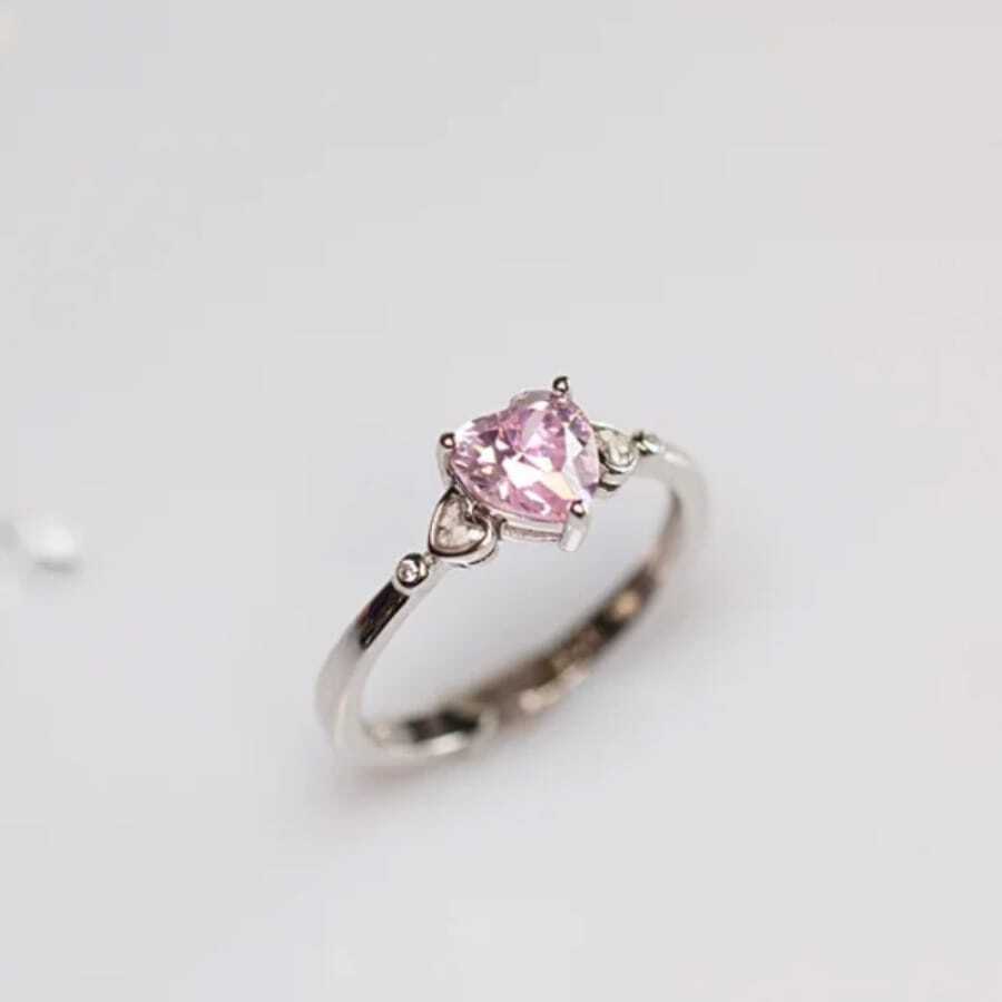 1 Piece Of Charming Simple Inlaid Pink Love Decoration Women's Ring For Daily Travel, Date, Party, Ceremony, Anniversary Gift