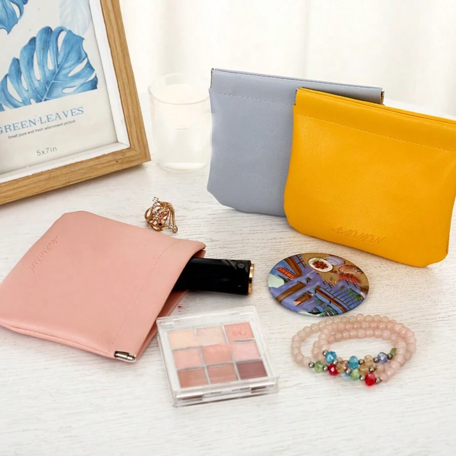 1 Piece Of Pink PU Portable, Simple And Fashionable Bullet Makeup Bag, Portable Lipstick Small Storage Bag, Mini Change Bag, Light Luxury Phone Bag, Headphone Bag, Suitable For Girls