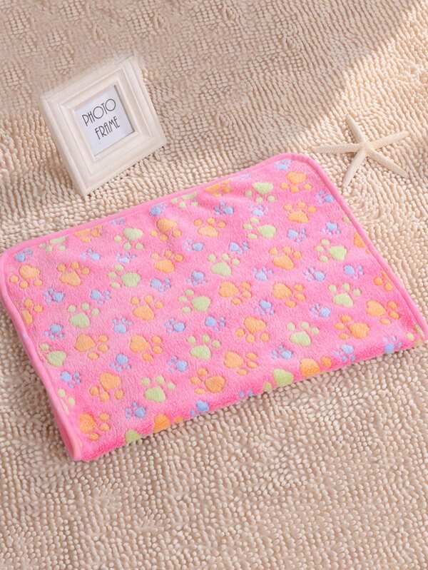1 Piece Pet Blanket Flannel Paw Print Blanket Suitable For Small And Medium-Sized Cats And Dogs For All Seasons (Edge Color Is Random)