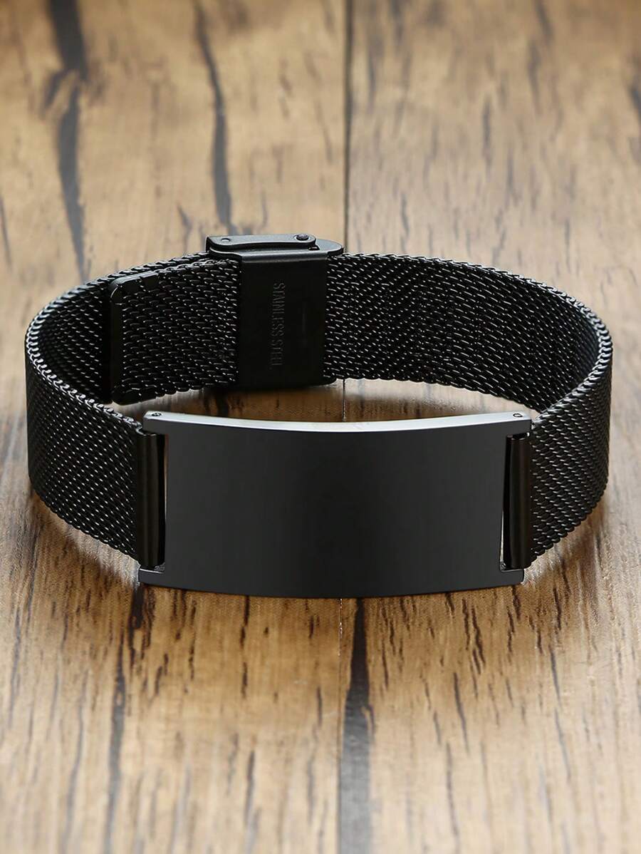 1 Piece Stainless Steel Black Curved Mesh Strap Simple Bracelet For Men Daily
