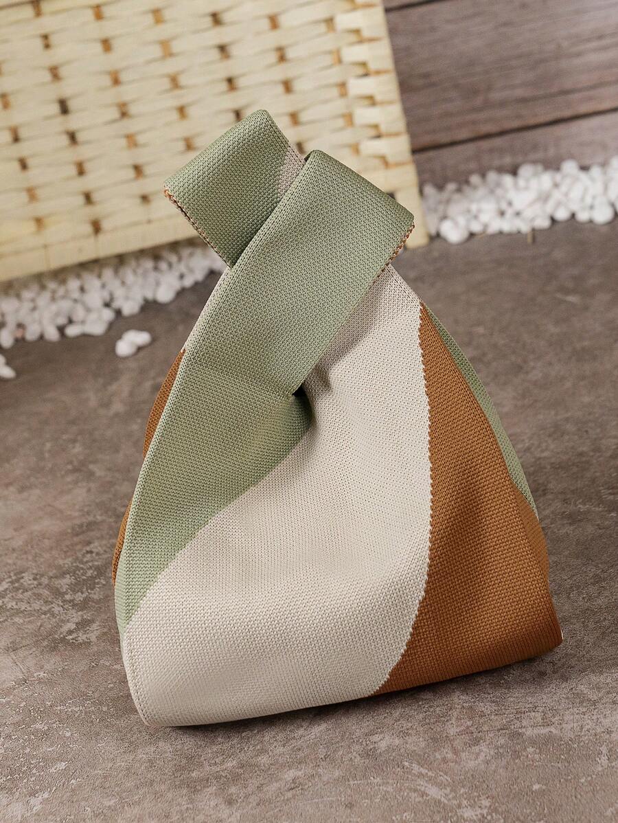 1 Piece Striped Color Block Hollow Out Knitted Crochet Breathable Lightweight Foldable Umbrella Makeup Lipstick Perfume Notebook Stain-resistant Open-mouthed Minimalist Ladies’ Shoulder Bag Tote Bag Handbag, Suitable for Daily, Vacation, School, Commute, Shopping, Photography, Travel, Camping, Gifting, Suitable for Girls, Ladies, Four Seasons, Bag