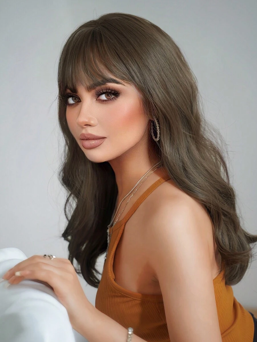 1-Piece Synthetic Heat Resistant Curly Hair With Bangs Wig Dark Brown Color 20 Inch Woven Daily Natural Realistic Wig Natal Christmas Christmas Decor Ano Novo Y2k Enfeite De Natal Gifts Flash Sale Fiesta Black Friday Flash Sale Offerte Speciali