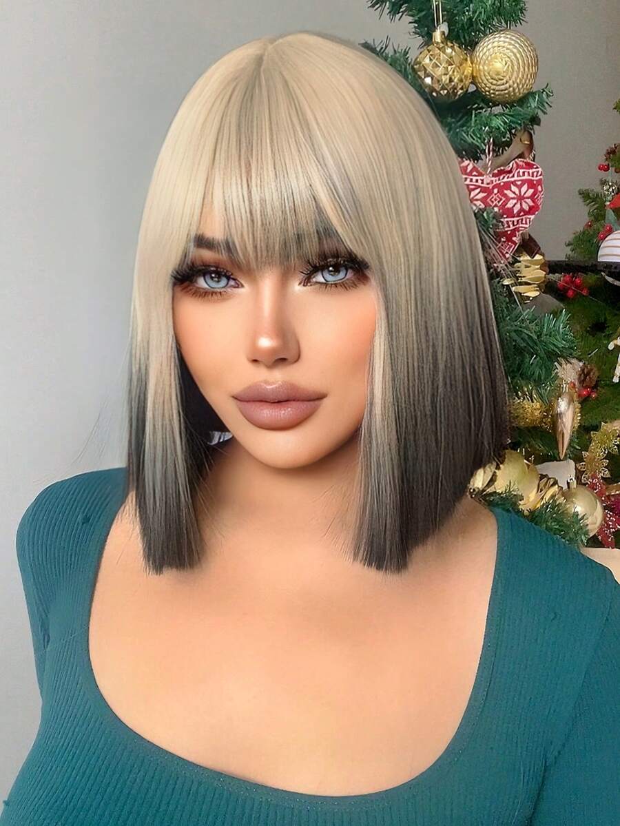 1-Piece Synthetic Heat Resistant Straight Hair With Bangs Wig Multicolor 12 Inch Fully Machine Woven Daily Natural Realistic Wig Natal Christmas Christmas Decor Ano Novo Y2k Enfeite De Natal Gifts Flash Sale Fiesta Black Friday Flash Sale Offerte Speciali