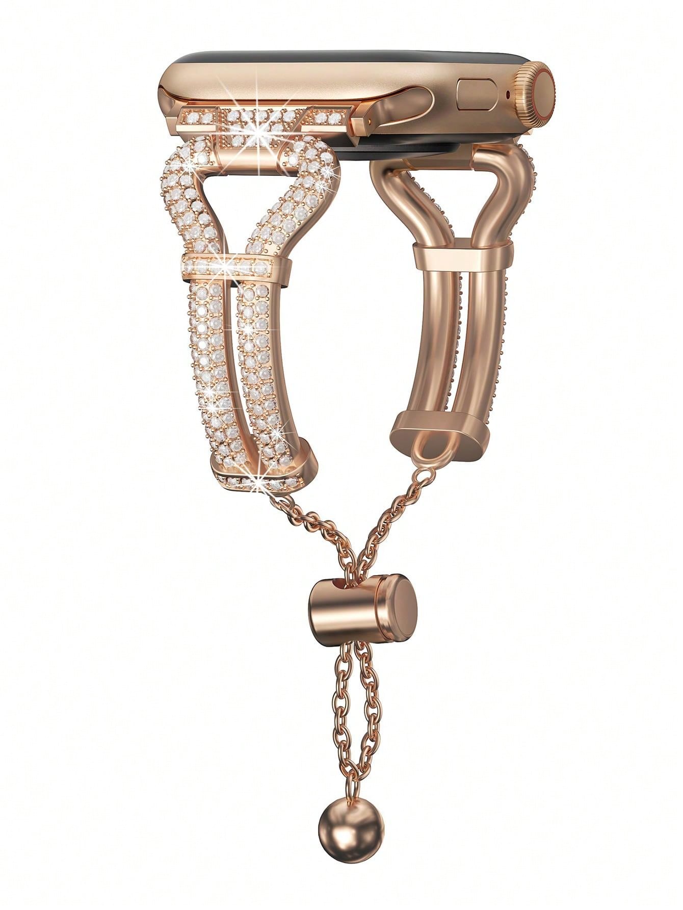 1 Piece Women Fashion Shining Diamond Inlaid Metal Apple Watch Strap Compatible With Apple Watch Band 40mm Ultra2 49mm 44m 45mm 41mm 42mm 38mm Wrist Strap Bracelet Compatible With SE 9 8 7 6 5 4 3 2 1 Apple Watch Accessories