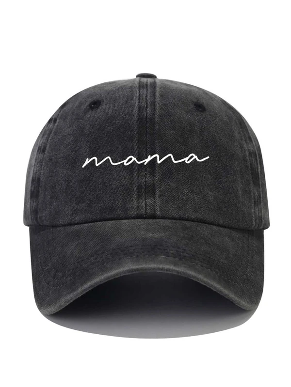 1 Piece Women mama Printed Baseball Cap Casual Fashion Street Style Hats Solid Color Washed Distressed Dad Hat