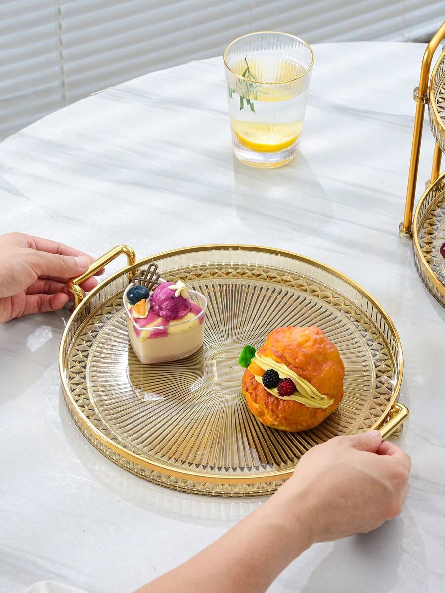 1 Ps Tray With Handle Design, Modern Double Handle Single Tray Suitable For Dining Table