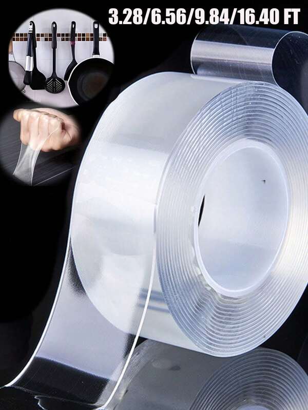 1 Roll Heavy Duty Double Sided Tapes, Reusable Traceless Strong Sticky Tape Strips, Multipurpose Removable Washable Clear Mounting Nano Tape For Paste Items In Home Office Car