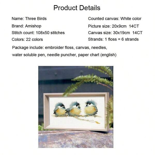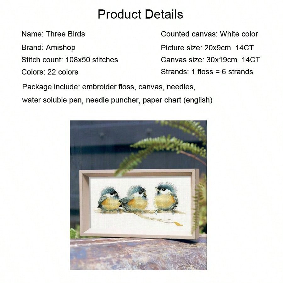 1 Set Counted Cross Stitch Kit Three Birds Singing On The Tree Needlework Diy Heritage