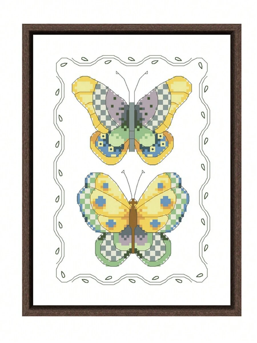 1 Set Cross Stitch Kit, Butterfly Pair, Cartoon Pattern, DIY Handmade Supplies, Needlework Craft