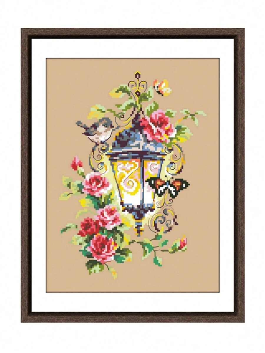 1 Set Cross Stitch Kit, Light Of Inspiration, Flower And Bird Lamps Pattern, DIY Handmade Supplies, Needlework Craft, Home Decoration