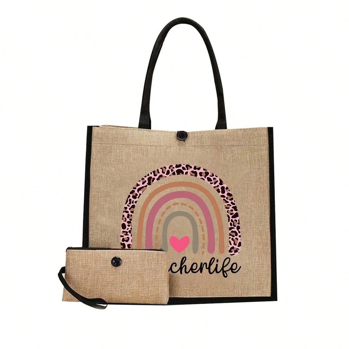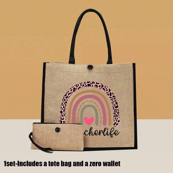 1 Set Includes A Printed Tote Bag And A Zero Wallet, The Best Gift For Teachers, Personalized Wedding Gift Bag For Female Bridesmaids, Makeup Bag, Travel Storage Bag, Solid Color Makeup Wallet, Large Capacity Travel Makeup Bag: Perfect For Outdoor Beauty! Suitable For Weddings, Birthdays, Beaches, Holidays, Large Bags, Gifts From Students Returning To School To Teachers, Portable Casual Storage Handbags, Multifunctional Shopping Bags, New Designs, Ideal For Shopping