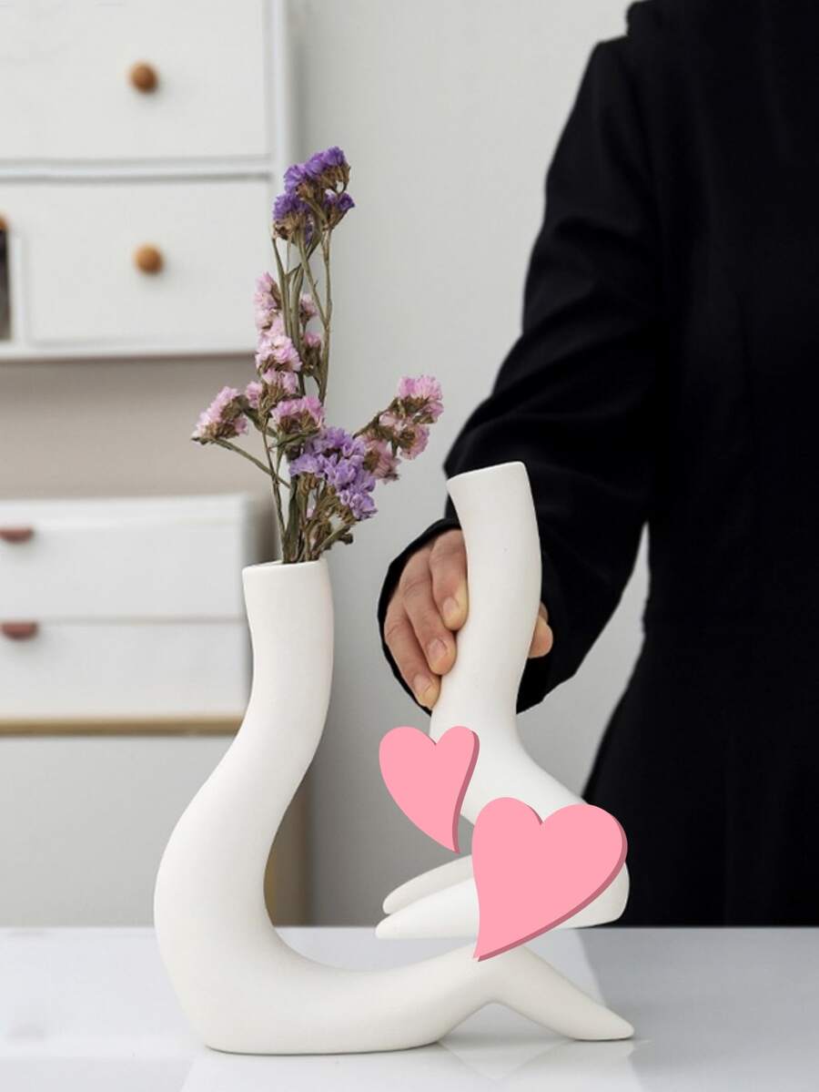 1 Set Of 2 White Ceramic Decorative Vases, Suitable For Small Amounts Of Flower Arrangements, Home Decoration