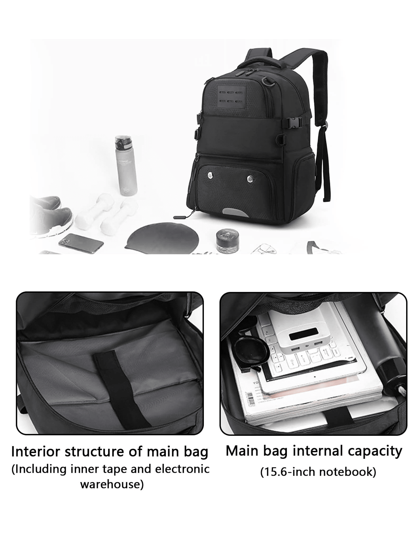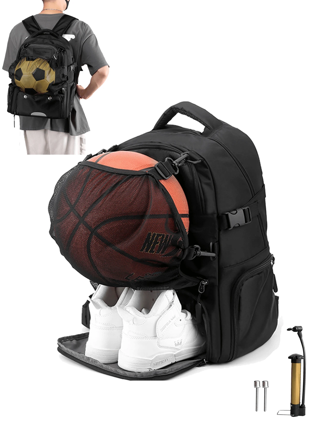 1 Set Of 35l Large-capacity Backpack, With Aluminum Alloy Pump And 2 Pump Needles, Can Hold 15.6-inch Laptop Bag, Waterproof And Wear-resistant Black Sports Training Equipment Bag, Gym Bag With Mesh Pocket And Separate Shoe Compartment, Suitable For Both Men And Women Outdoor Cycling Swimming Travel, Can Hold Helmet Football Volleyball Rugby Basketball Backpack