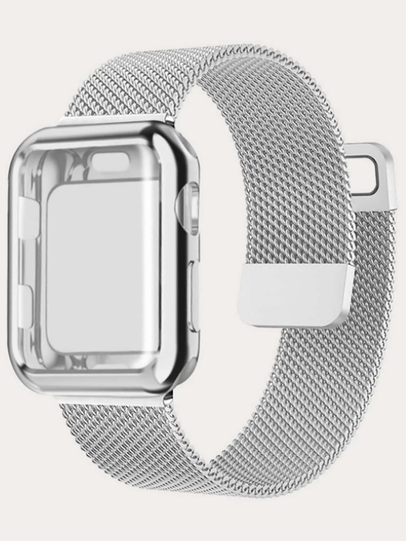 1 Set Of Compatible Milanese Loop Mesh Metal Strap & Metal Shockproof Screen Protector Integrated Watch Case In Silver Compatible With Apple watch 40mm 41mm 44mm 45mm Se/9/8/7/6/5/4, For Both Genders With Fashionable Design