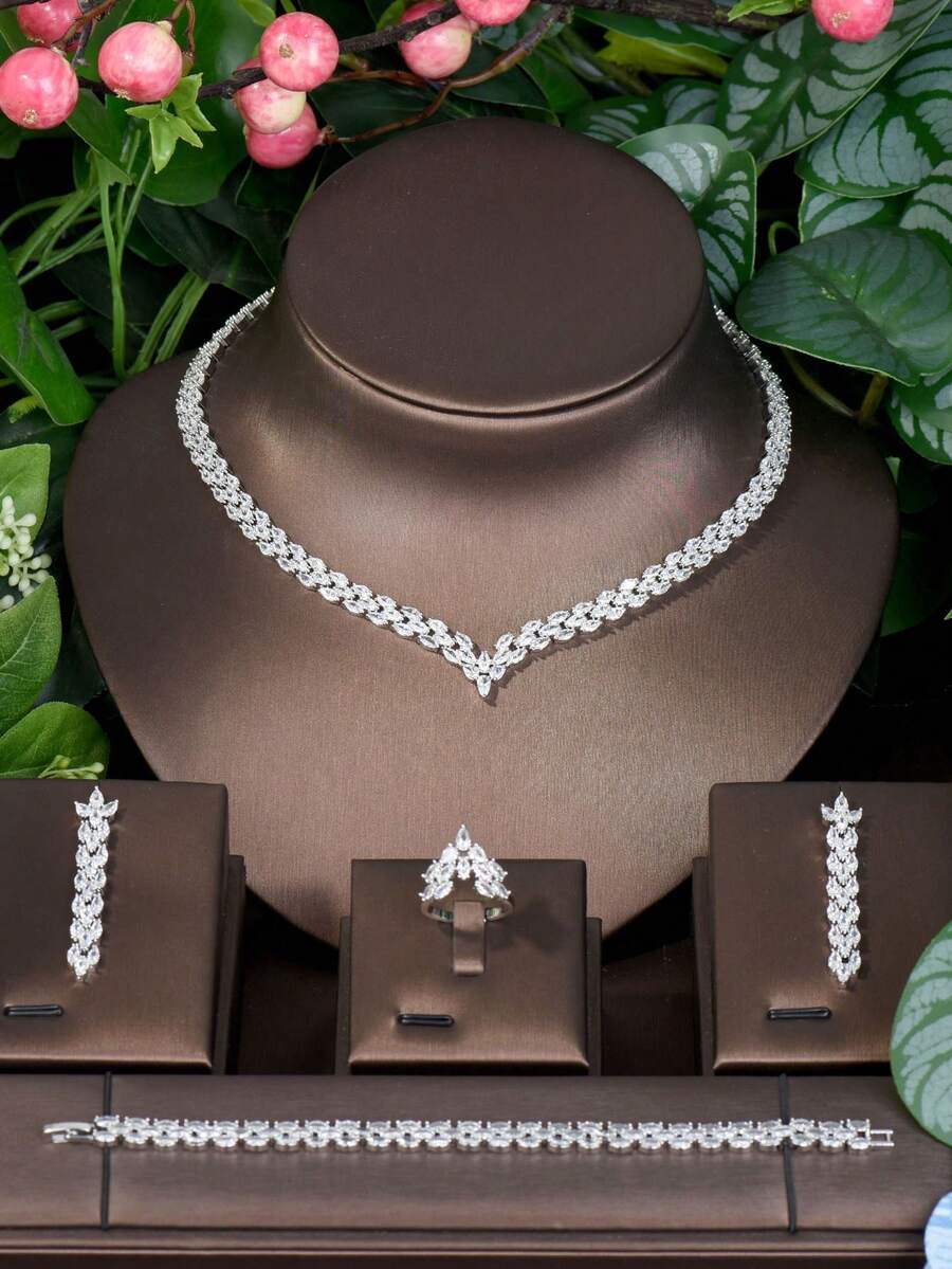 1 Set Simple Cubic Zirconia Rhombus Decorated Jewelry Set Suitable For Ladies To Wear While Traveling