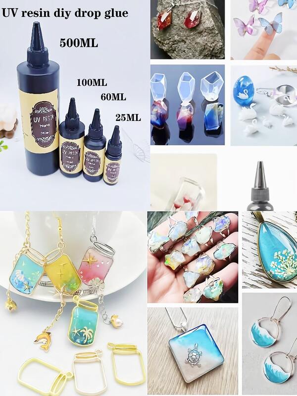 1 Set UV Resin kit 25ML/60ML/100ML/500ML UV Resin, Crystal Clear Resin Glue, UV Flashlight for Jewelry Crafts, Casting, UV Resin Molds UV Curing Resin, UV Resin kit UV Epoxy Resin Hard for All DIY Beginners