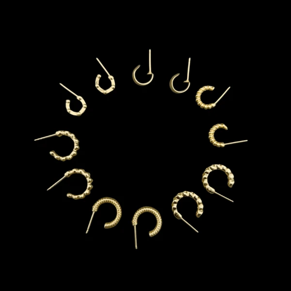 1 Set/6pairs Fashionable Zinc Alloy Gold-Plated Metallic Texture Large C Hoop Earrings, Suitable For Women'S Daily Wear