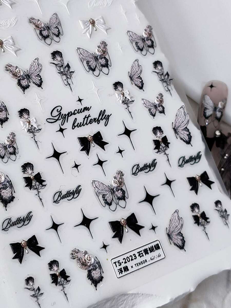 1 Sheet 5D Realistic Relief Beautiful Butterfly Adheisve Nail Art Stickers Decals Manicure Charms