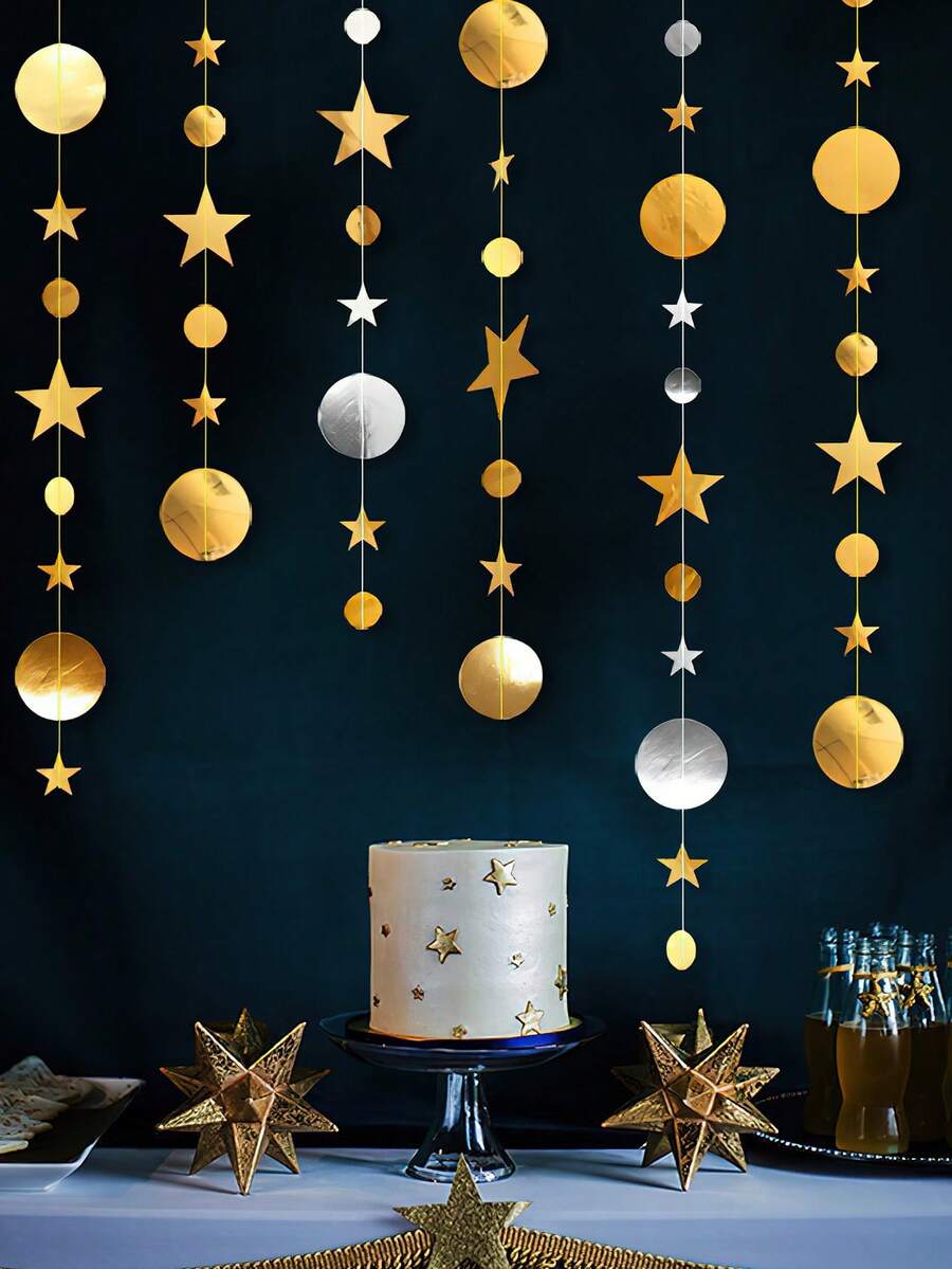 1 String Party Decoration Gold & Silver Round Shape & Star Shape Hanging Garland