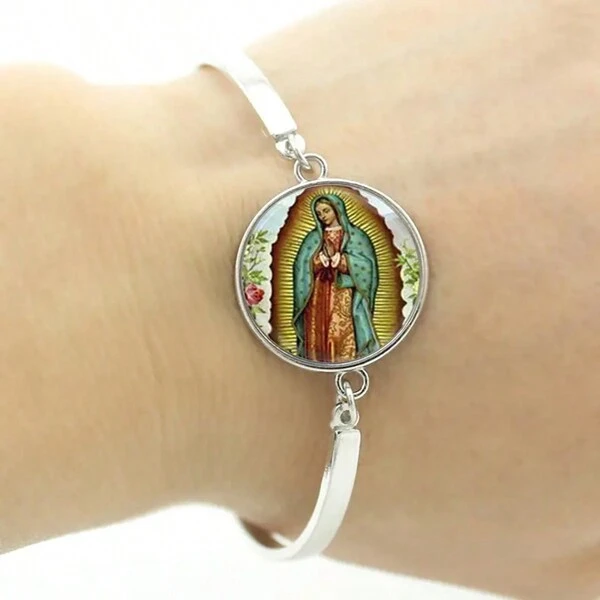 1 Time Gem Virgin Pattern Bracelet Virgin Mary Catholic Glass Gem Alloy Bracelet
