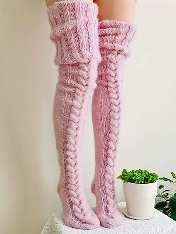 1 pair of woolen foot warmers for autumn and winter solid color over-the-knee socks stockings piles of socks thick women's socks party festival