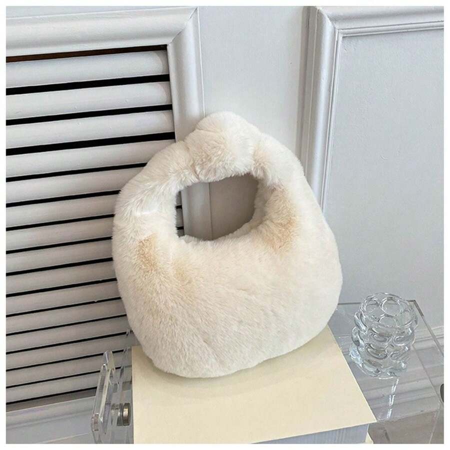 1 pcs Fur Handbags Women's Small Half Moon Bag Warm Plush Wrist Bags Fashion Furry Short Handle Clutch Cute Ladies Coin Purses