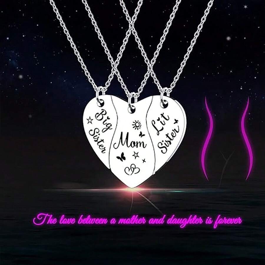 1 set of children's heart shape matching sisters necklace set suitable for 2 3 4, best friend necklace BFF necklace set, mother daughter charm necklace, sisters friendship necklace, Christmas birthday gift for mother daughter sisters best friend