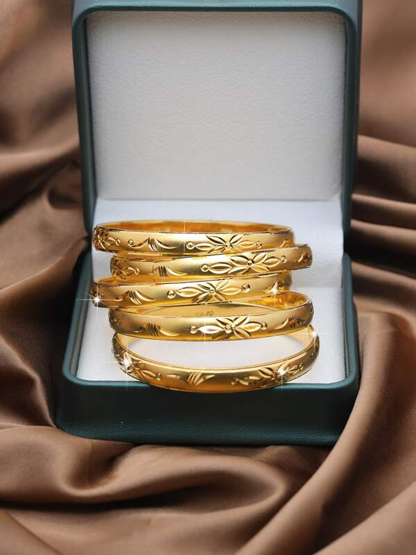 1/3/6pcs 24k Gold Plated Traditional Sha Gold Hand-crafted Carved Bracelet, Suitable For Women's Daily Wear And Gift Giving