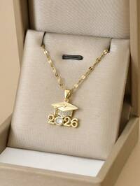 Royal Elegance1pc Fashionable Cubic Zirconia Graduation Cap Stainless Steel Necklace, Graduation Season, 2026, Winter Vacation, Unisex Necklace, Gold Jewelry, Gold Necklace, Summer, Valentine's Day, Gift, Beach, For Lover, For Friend #2 Bestseller