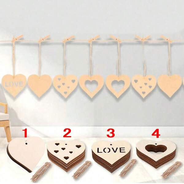 10 Pieces 8cm Love Wood Piece, DIY Blank Wood Piece Decorative Hanging, Hand-Painted Hanging, Valentine'S Day Gift