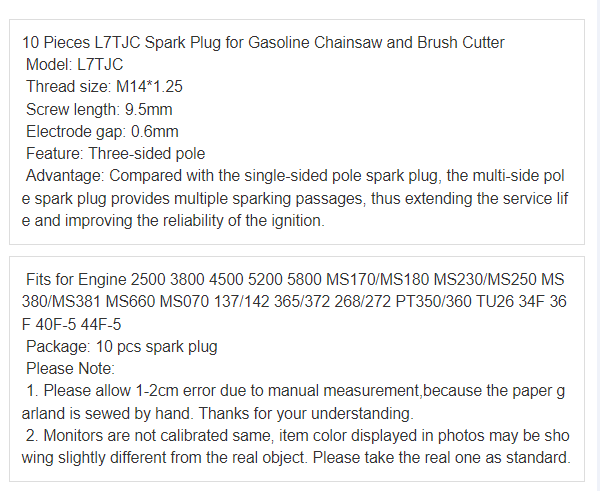 10 Pieces L7TJC Spark Plug For Gasoline Chainsaw And Brush Cutter