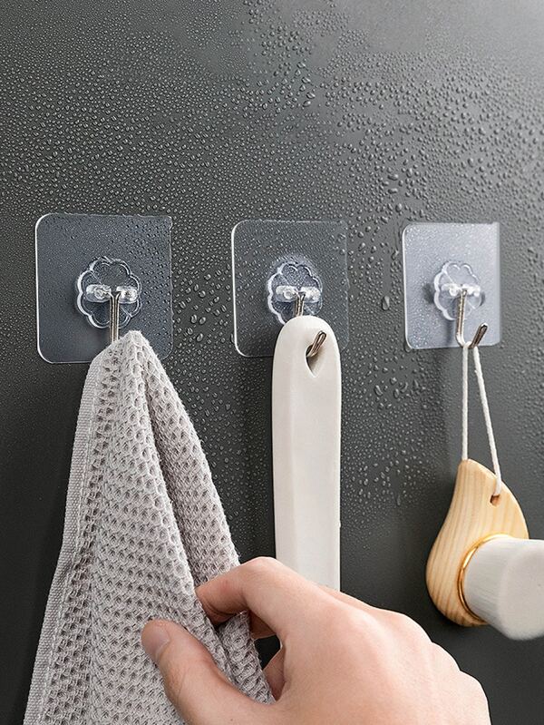 10/20/30pcs Transparent Stainless Steel Strong Self Adhesive Hooks Key Storage Hanger For Kitchen Bathroom Door Wall Multi-Function
