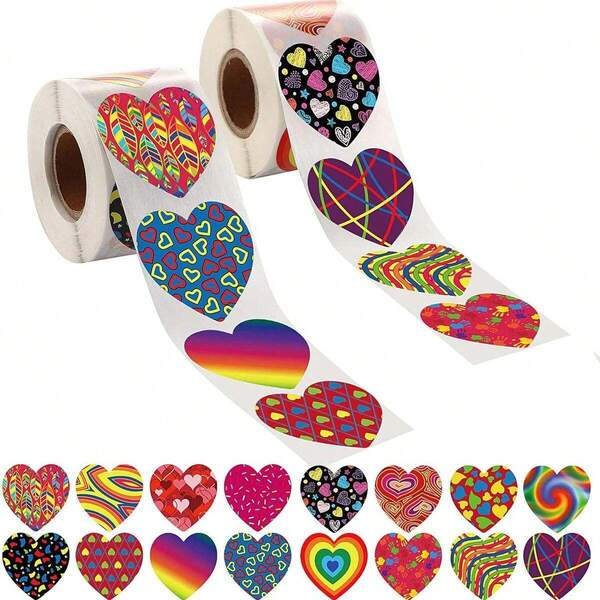 1000 Pieces Valentine'S Heart Roll Stickers, Valentine'S Day Colorful Heart Shaped Sticker Love Decorative Sticker Heart Labels For Valentines Day Decoration Wedding Party Accessories