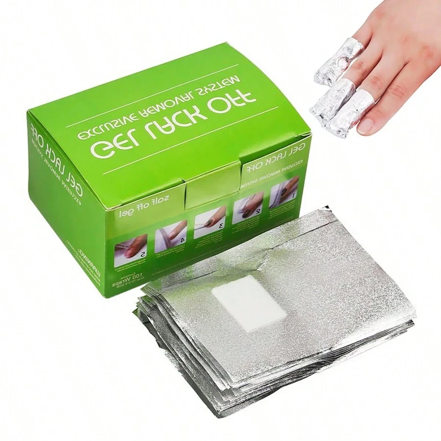 100Pcs/Box Nail Removal Foil Wraps Acrylic Gel Unloading Tin Foil Pad Nail Art Soak Off Remover Aluminum Nail Bag