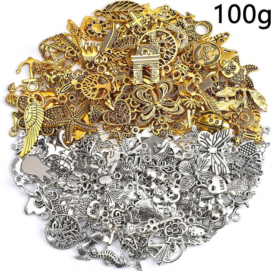 100g Antique Gold & Silver Colored Jewelry Making Beads, Diy Necklace, Bracelet, Earring Accessories, Craft Pendants